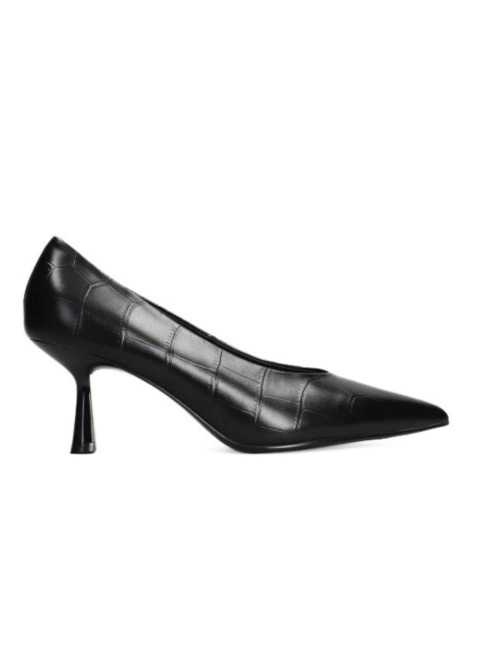 Decollete in pelle, effetto coccodrillo a punta, tacco circa 7cm.