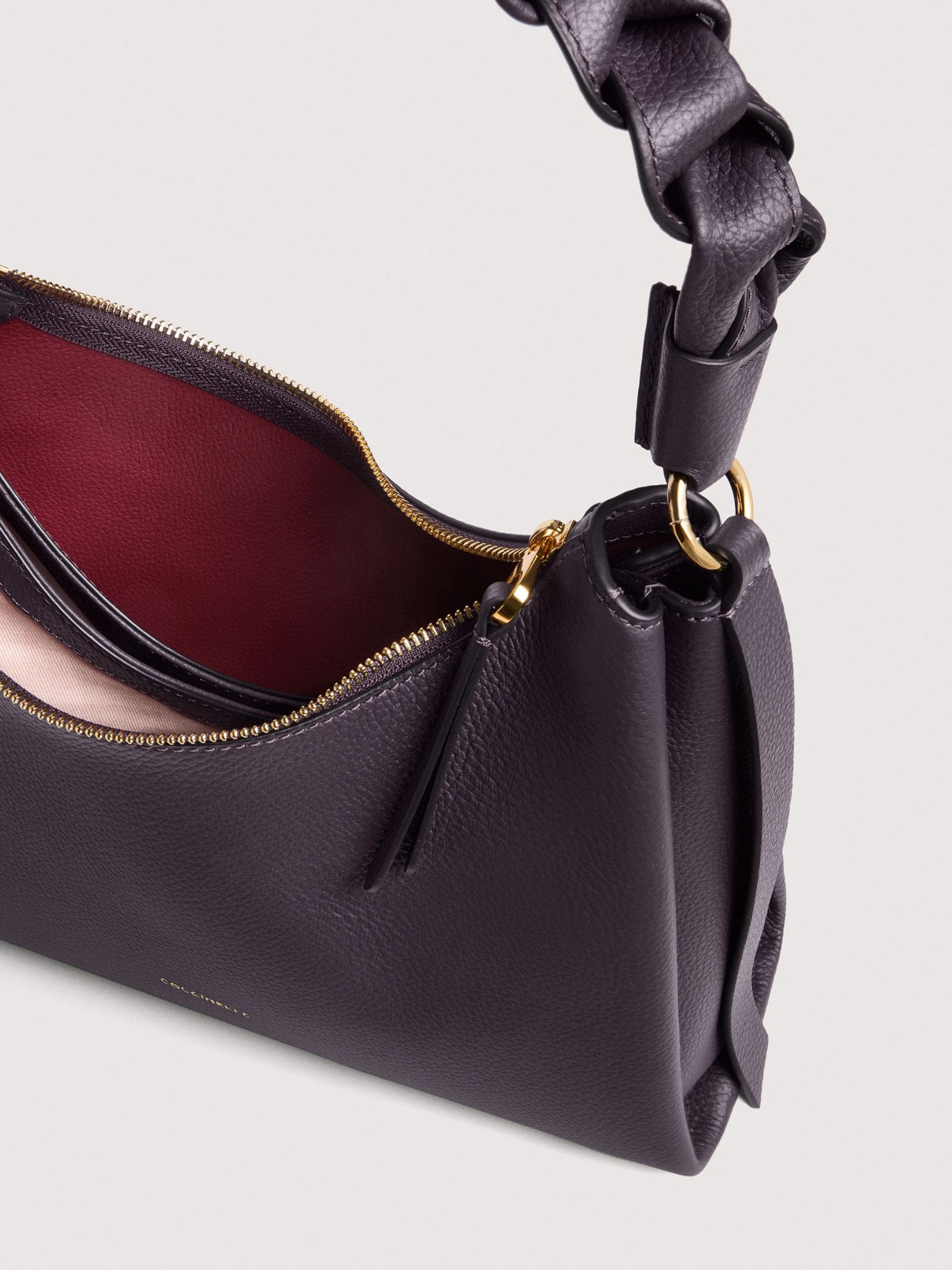 Borsa in pelle double, manico intrecciato, chiusurra con zip, tre tasce interne, logo oro.