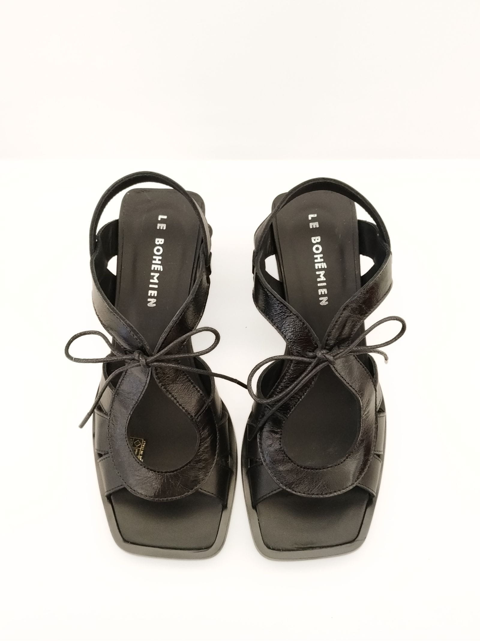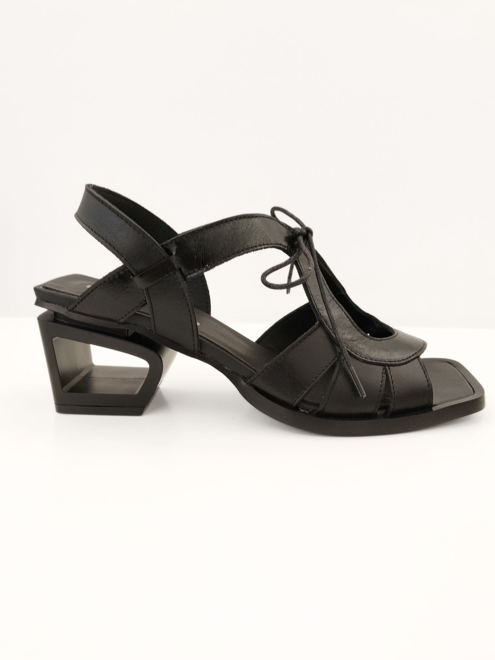 Sandali in pelle, dettaglio laccio sul davanti regolabile, suola interna in pelle, suola in gomma con particolare tacco vuoto caratteristico del brand. Made in Italy.