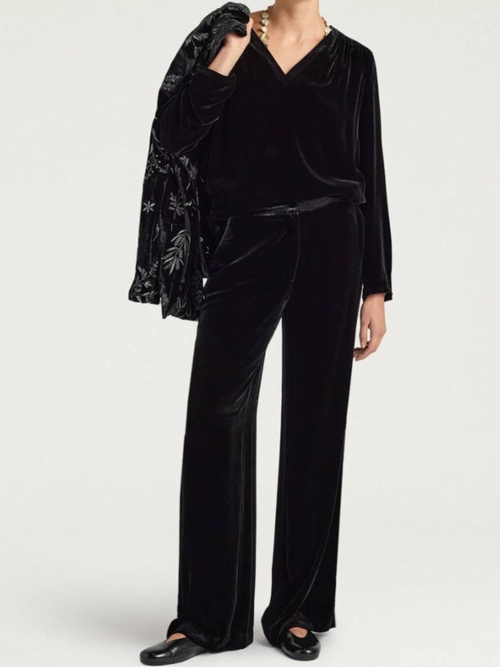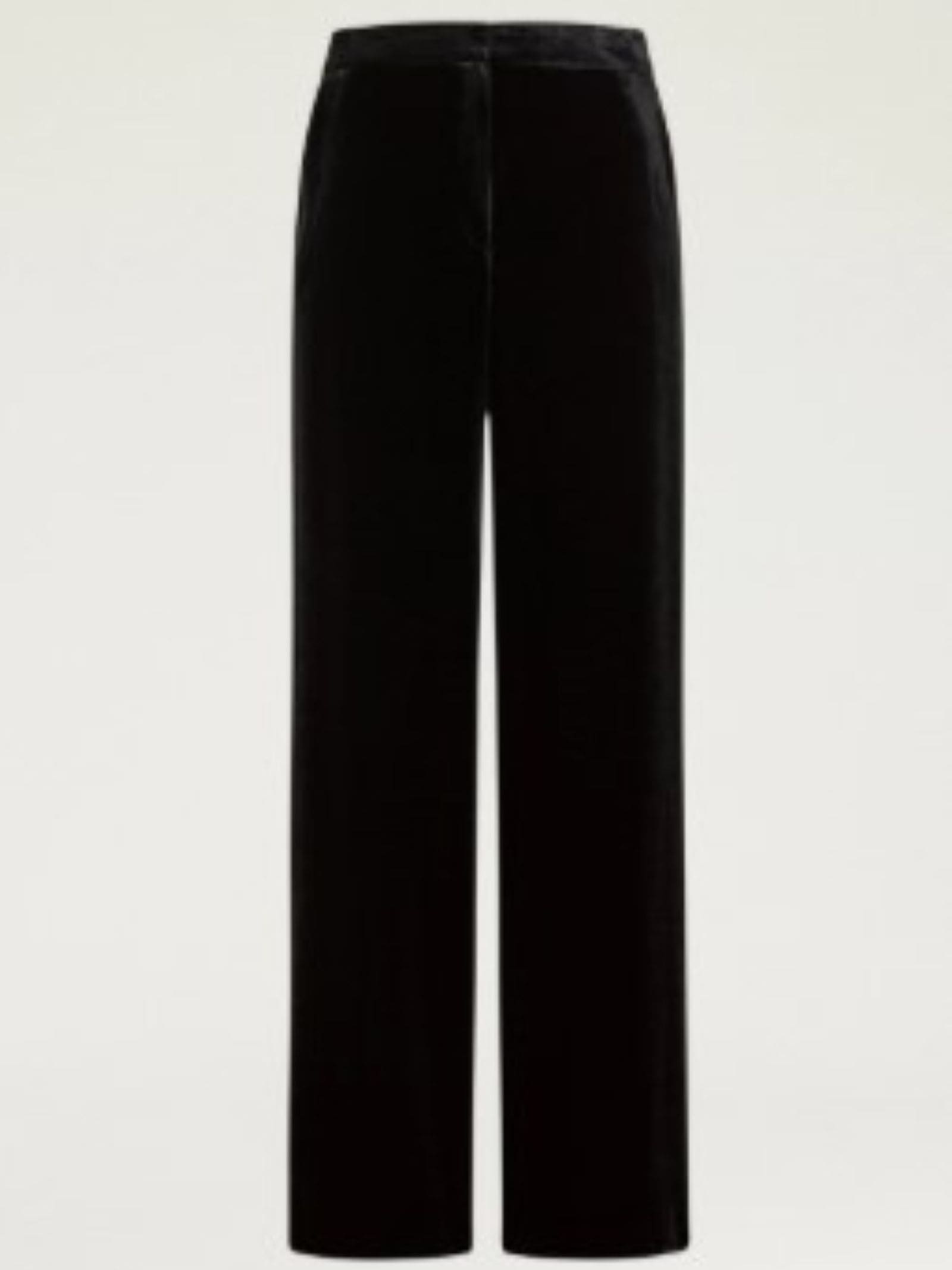 Pantalone palazzo in velluto in viscosa misto seta, vhiusura con bottone e zip, tasche alla francese.