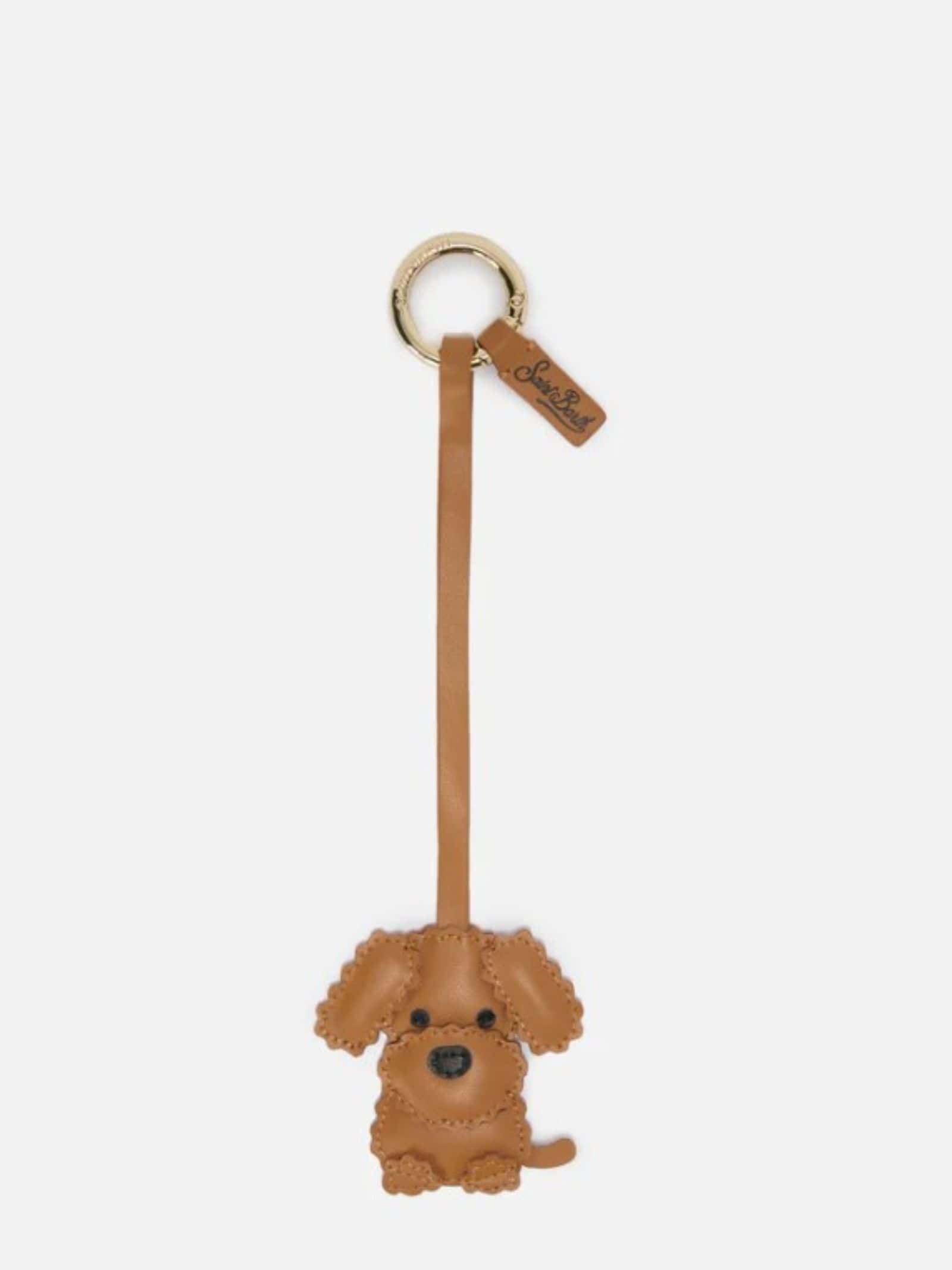 Charme o portachiavi in pelle a forma di cane, anello logato, logo stamapto metallizzato.