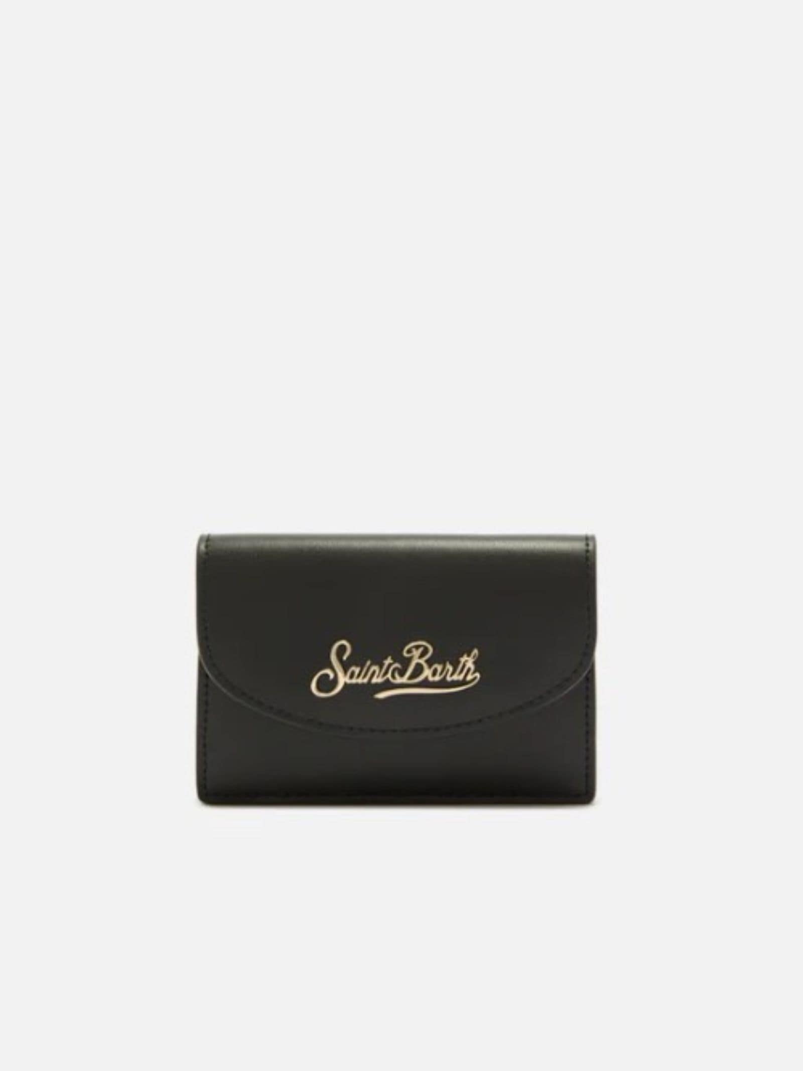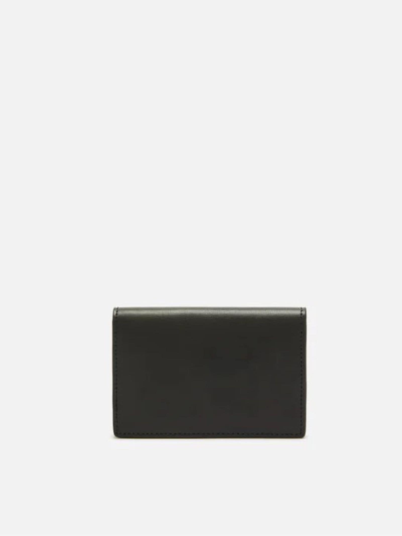 Portadocumenti in pelle, placchetta con logo, scomparti per carte, chiusura con bottone.