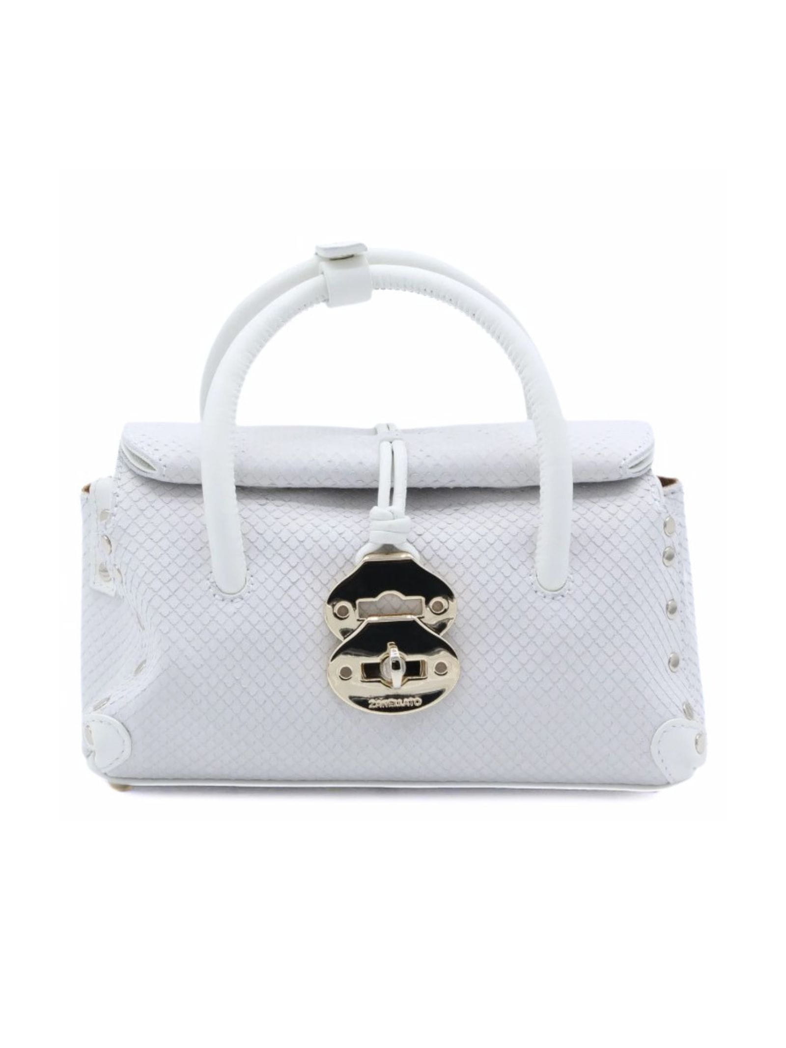 Dotta in pelle, interno foderato in cotone, lavorazione Amoretto realizzata attraverso pressatura che genera effetto rettile chiusura con magneti e chiusura metallica classica del brand, tracolla regolabile e removibile.